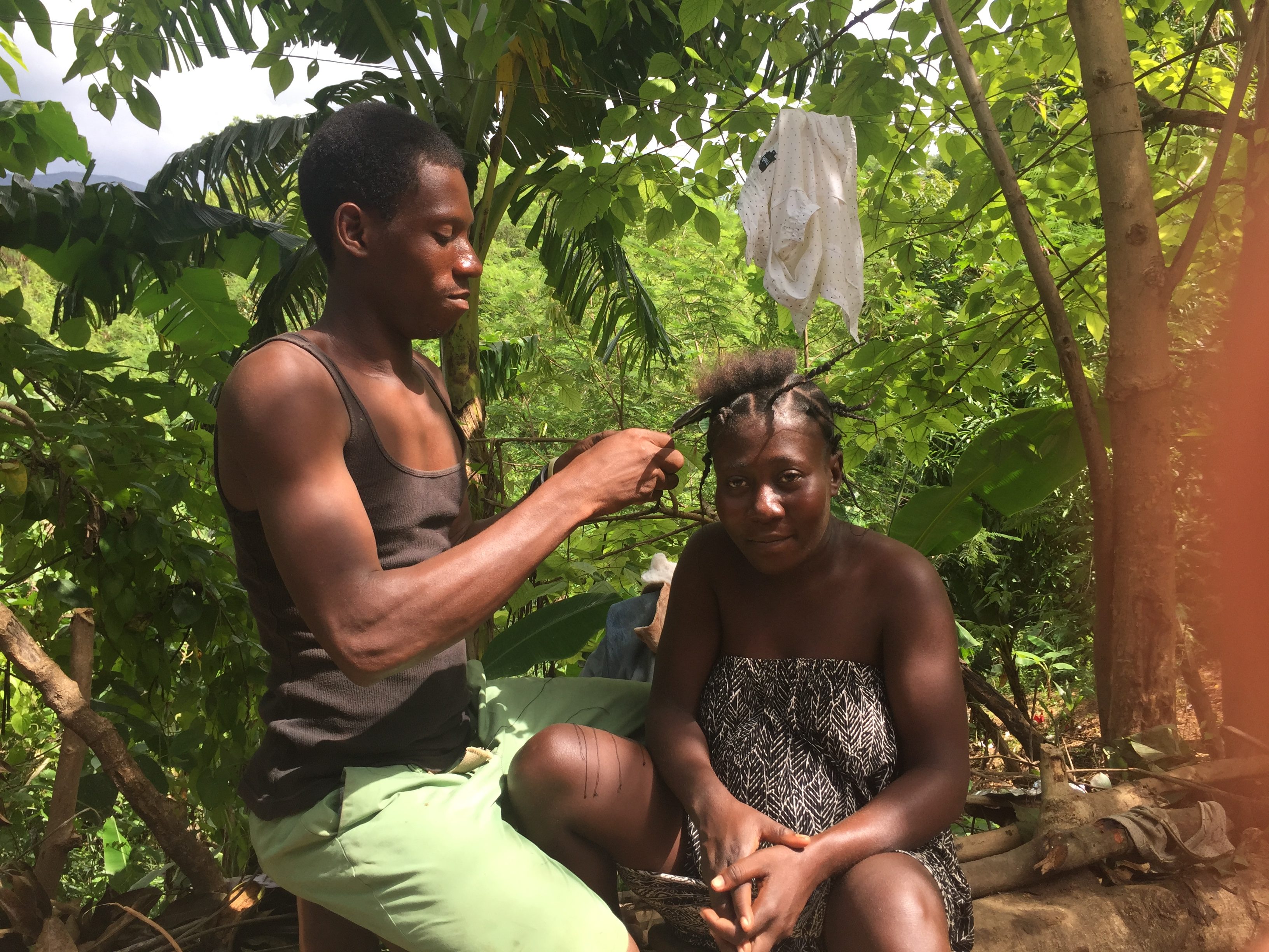 Soiye braiding Perrona’s hair.